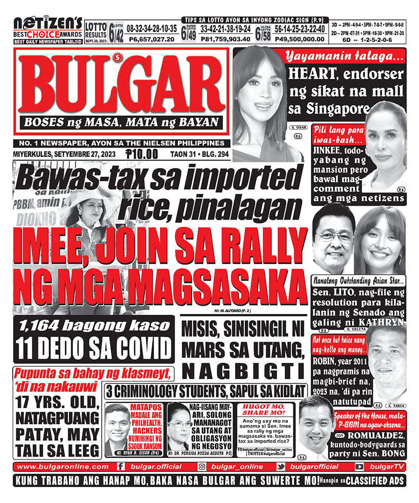 Bulgar Digital, September 27, 2023BULGARSep 27, 2023Alamin at basahin ang mga #headlines sa pahayagan ng Bulgar ngayong September 27, 2023.#bulgar #Bulgaronline #headlines2023 #NewsHeadlines #bulgarnews #frontpage #frontpagenews #tabloidnewspapers #Tabloid