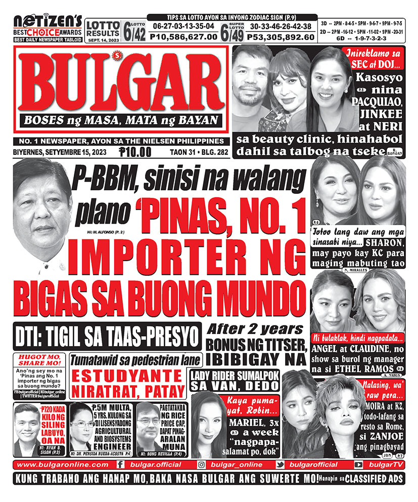 Bulgar Digital, September 15, 2023BULGARSep 15, 2023Alamin at basahin ang mga #headlines sa pahayagan ng Bulgar ngayong September 15, 2023.#bulgar #Bulgaronline #headlines2023 #NewsHeadlines #bulgarnews #frontpage #frontpagenews #tabloidnewspapers #Tabloid
