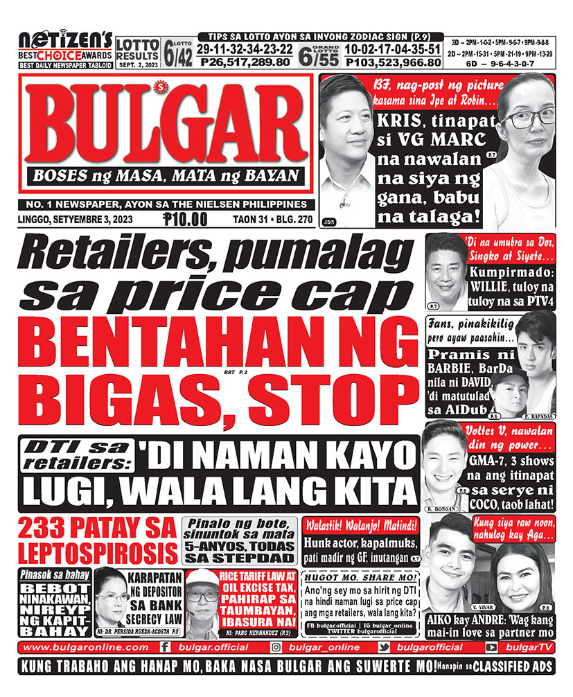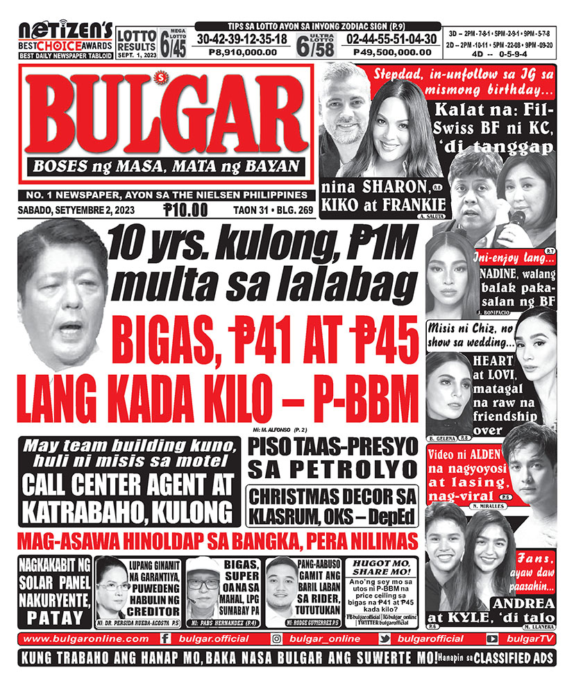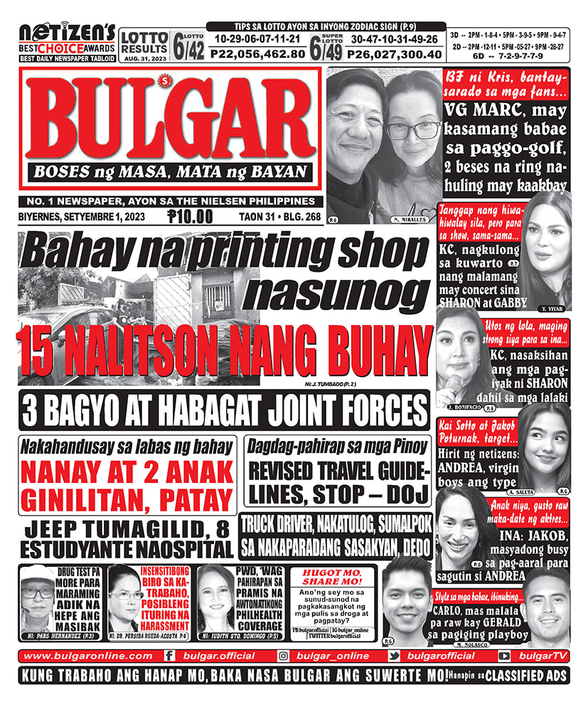Bulgar Digital, September 1, 2023BULGARSep 1, 2023Alamin at basahin ang mga #headlines sa pahayagan ng Bulgar ngayong September 1, 2023.#bulgar #Bulgaronline #headlines2023 #NewsHeadlines #bulgarnews #frontpage #frontpagenews #tabloidnewspapers #Tabloid