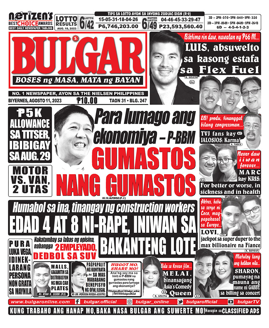Bulgar Digital, August 10, 2023BULGARAug 10, 2023Alamin at basahin ang mga #headlines sa pahayagan ng Bulgar ngayong August 10, 2023.#bulgar #Bulgaronline #headlines2023 #NewsHeadlines #bulgarnews #frontpage #frontpagenews #tabloidnewspapers #Tabloid