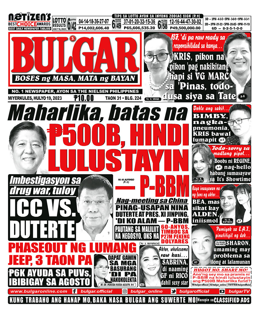 Bulgar Digital, July 19, 2023BULGARJul 19, 2023Alamin at basahin ang mga #headlines sa pahayagan ng Bulgar ngayong July 19, 2023.#bulgar #Bulgaronline #headlines2023 #NewsHeadlines #bulgarnews #frontpage #frontpagenews #tabloidnewspapers #Tabloid