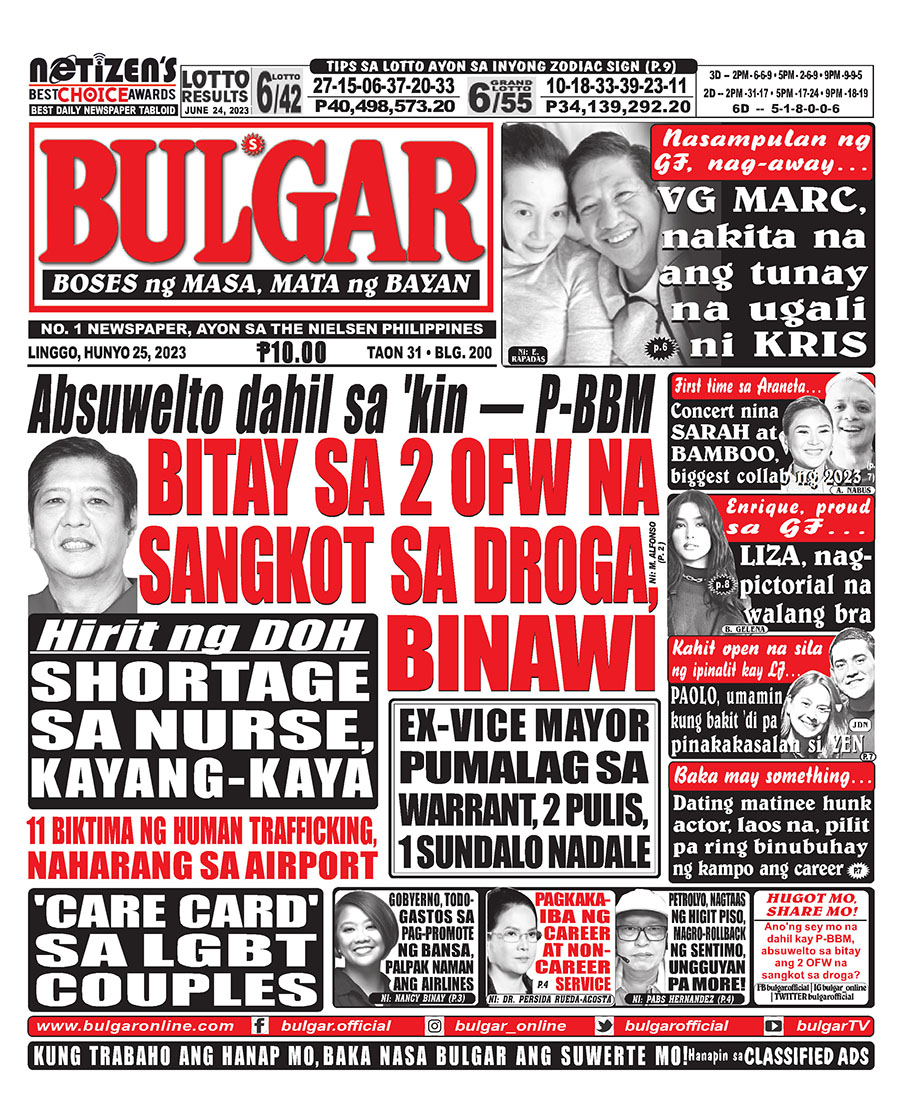 Alamin at basahin ang mga #headlines sa pahayagan ng Bulgar ngayong June 25, 2023.