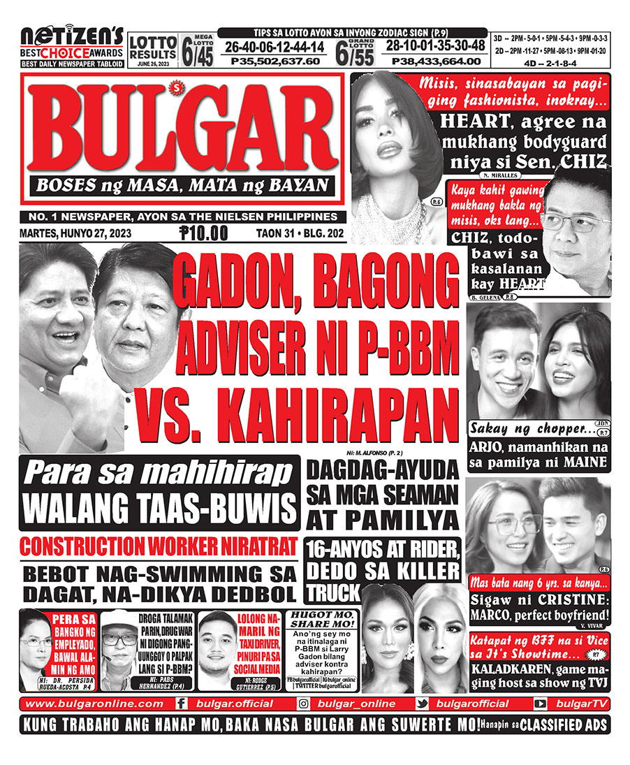 Alamin at basahin ang mga #headlines sa pahayagan ng Bulgar ngayong June 27, 2023.