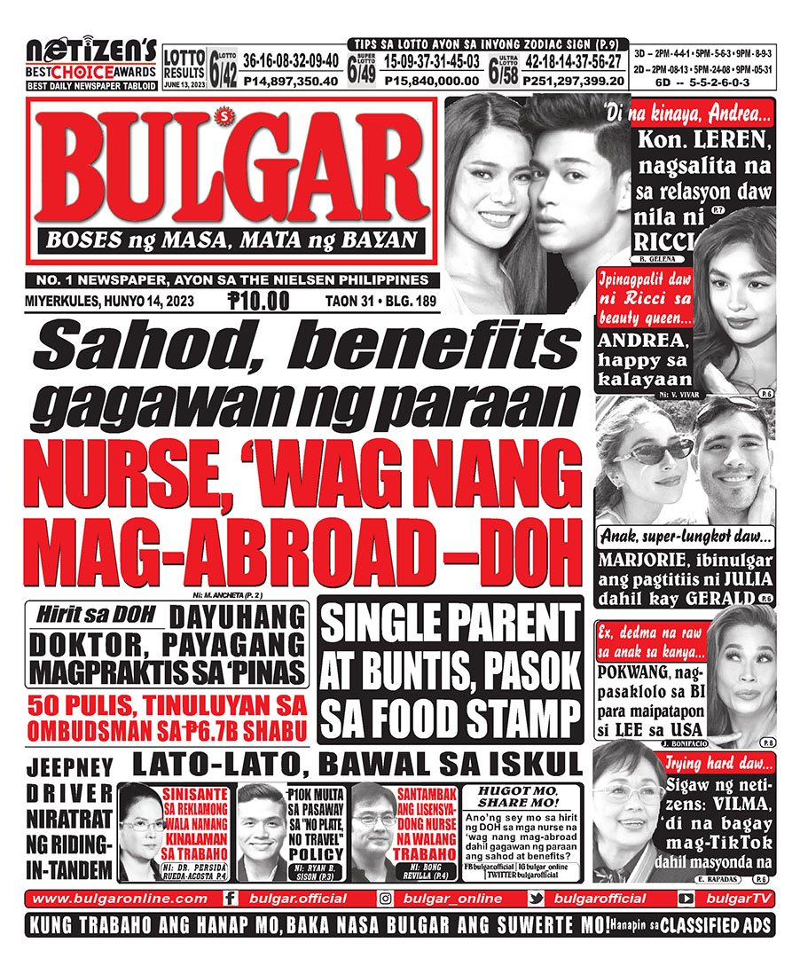 Alamin at basahin ang mga #headlines sa pahayagan ng Bulgar ngayong June 14, 2023.
