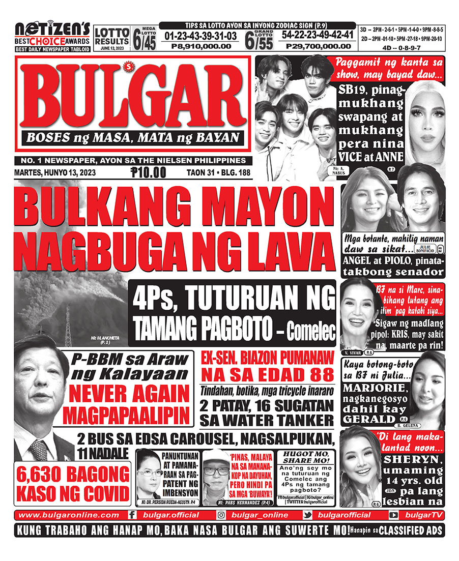 Alamin at basahin ang mga #headlines sa pahayagan ng Bulgar ngayong June 13, 2023.