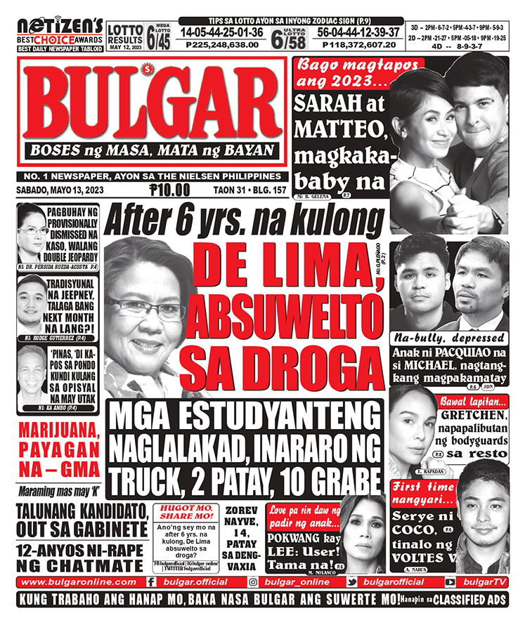 Bulgar Digital, May 13, 2023BULGARMay 13, 2023Alamin at basahin ang mga #headlines sa pahayagan ng Bulgar ngayong May 13, 2023.#bulgar #Bulgaronline #headlines2023 #NewsHeadlines #bulgarnews #frontpage #frontpagenews #tabloidnewspapers #Tabloid
