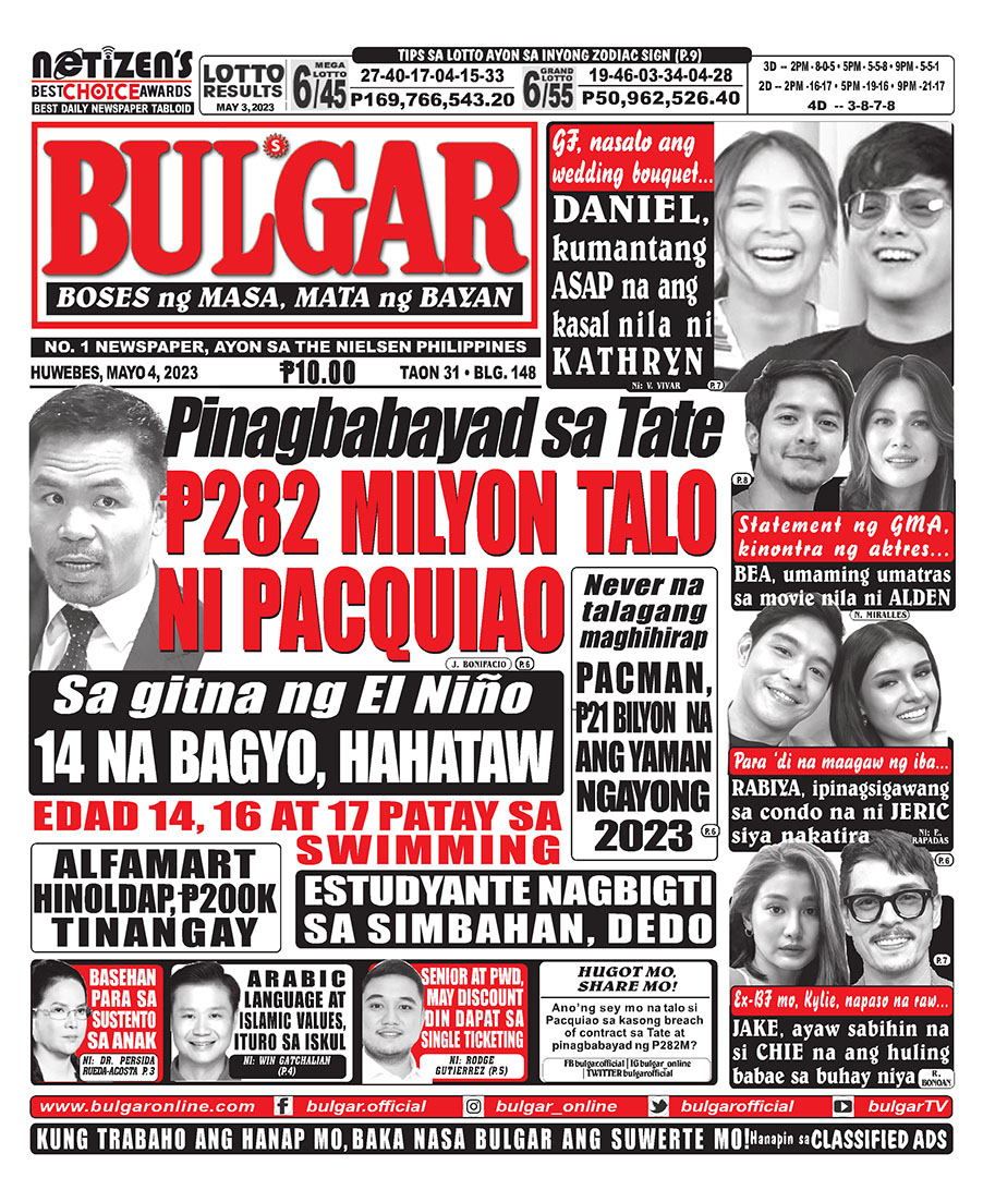 Bulgar Digital, May 4, 2023BULGARMay 4, 2023Alamin at basahin ang mga #headlines sa pahayagan ng Bulgar ngayong May 4, 2023.#bulgar #Bulgaronline #headlines2023 #NewsHeadlines #bulgarnews #frontpage #frontpagenews #tabloidnewspapers #Tabloid