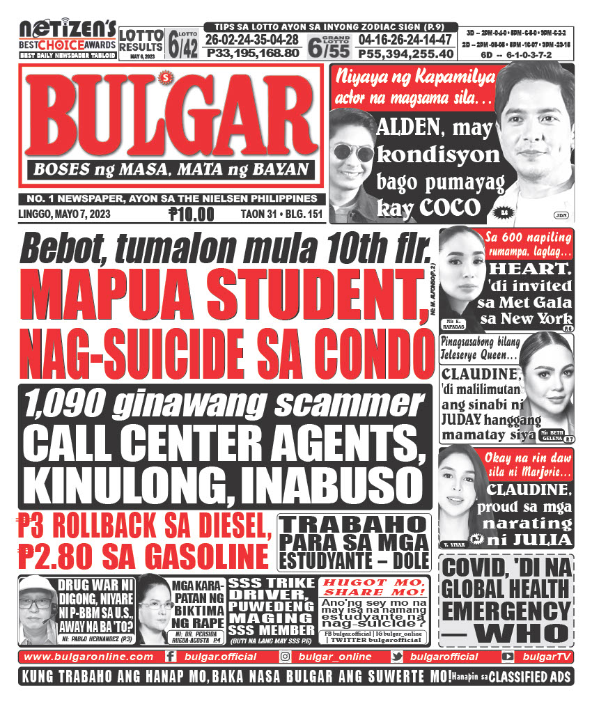 Bulgar Digital, May 7, 2023BULGARMay 7, 2023Alamin at basahin ang mga #headlines sa pahayagan ng Bulgar ngayong May 7, 2023.#bulgar #Bulgaronline #headlines2023 #NewsHeadlines #bulgarnews #frontpage #frontpagenews #tabloidnewspapers #Tabloid