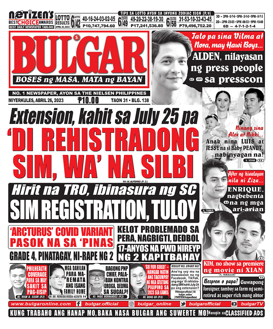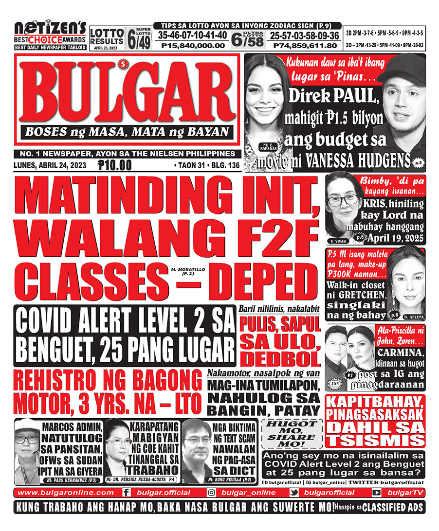 Bulgar Digital, April 25, 2023BULGARApr 25, 2023Alamin at basahin ang mga #headlines sa pahayagan ng Bulgar ngayong April 25, 2023.#bulgar #Bulgaronline #headlines2023 #NewsHeadlines #bulgarnews #frontpage #frontpagenews #tabloidnewspapers #Tabloid