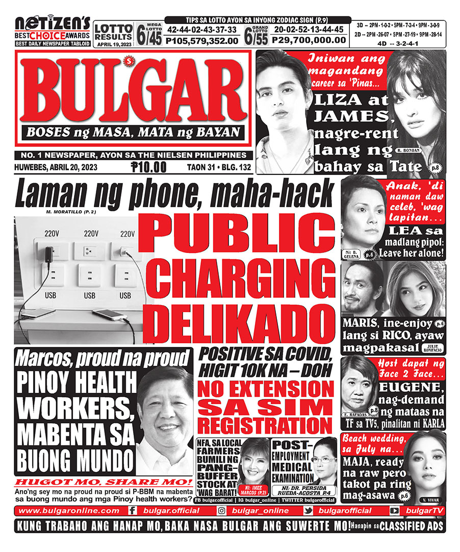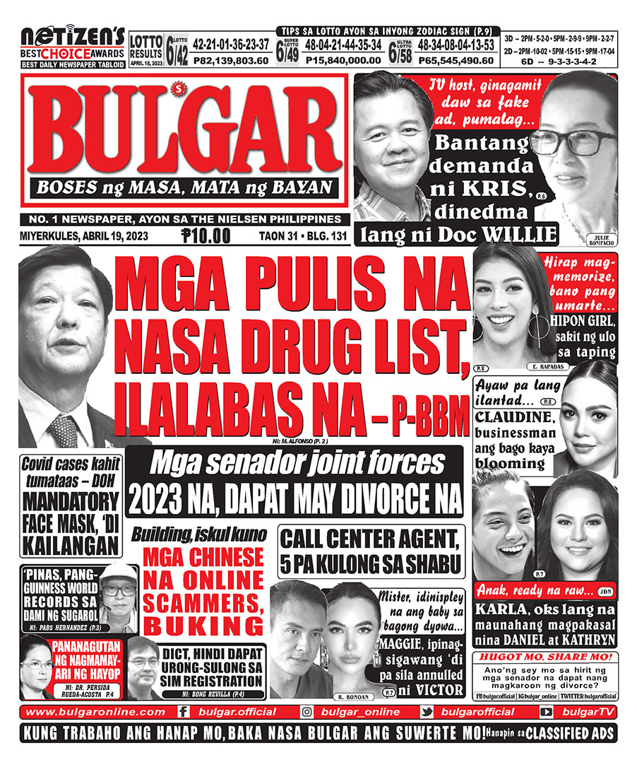 Bulgar Digital, April 19, 2023BULGARApr 19, 2023Alamin at basahin ang mga #headlines sa pahayagan ng Bulgar ngayong April 19, 2023.#bulgar #Bulgaronline #headlines2023 #NewsHeadlines #bulgarnews #frontpage #frontpagenews #tabloidnewspapers #Tabloid