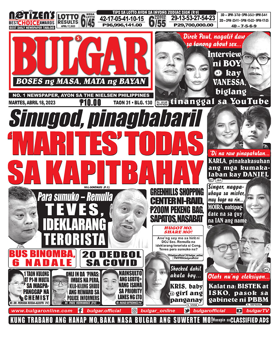 Bulgar Digital, April 18, 2023BULGARApr 18, 2023Alamin at basahin ang mga #headlines sa pahayagan ng Bulgar ngayong April 18, 2023.#bulgar #Bulgaronline #headlines2023 #NewsHeadlines #bulgarnews #frontpage #frontpagenews #tabloidnewspapers #Tabloid