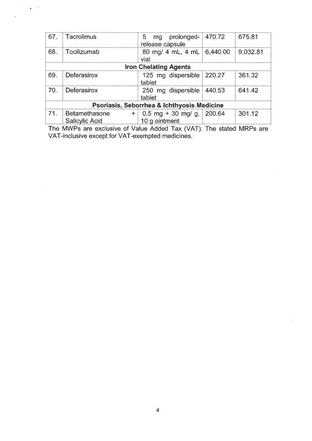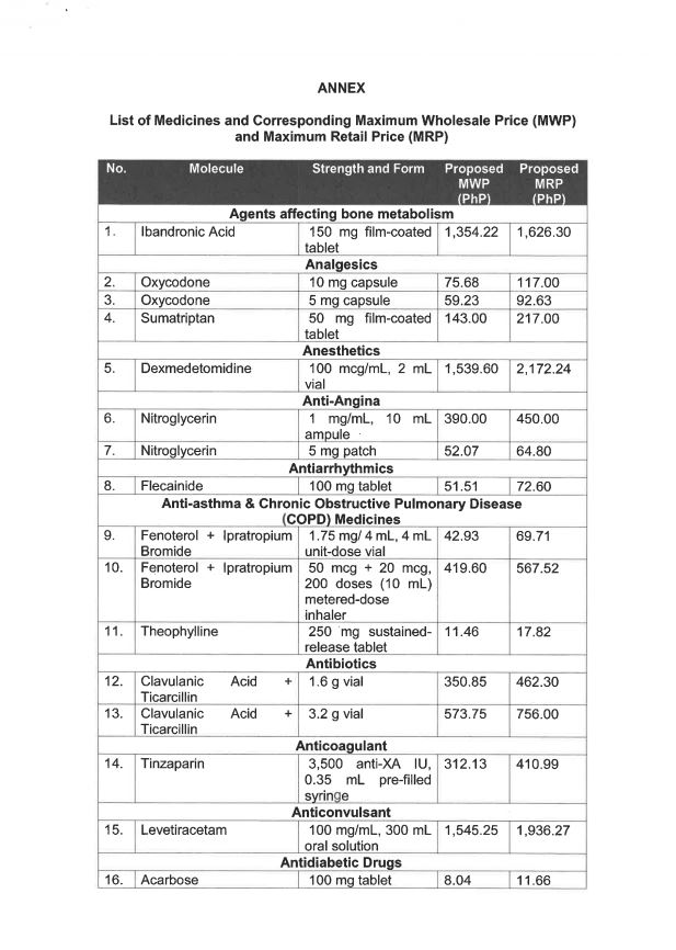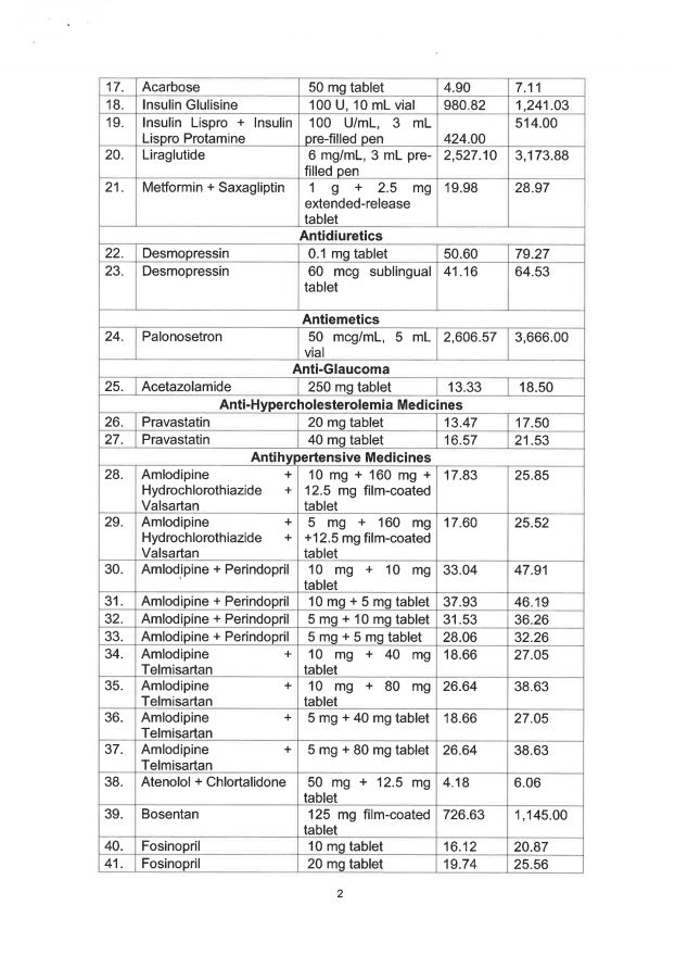 Narito ang mga regulated prices para sa mga nasabing medisina: